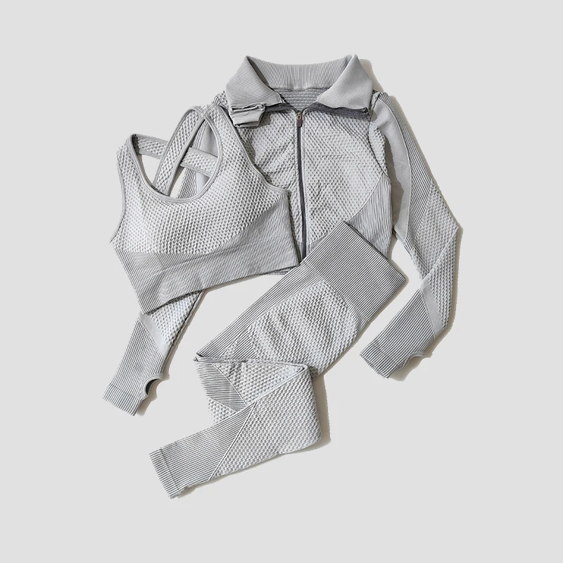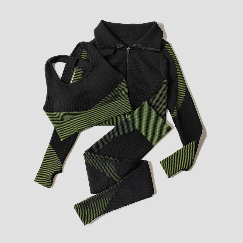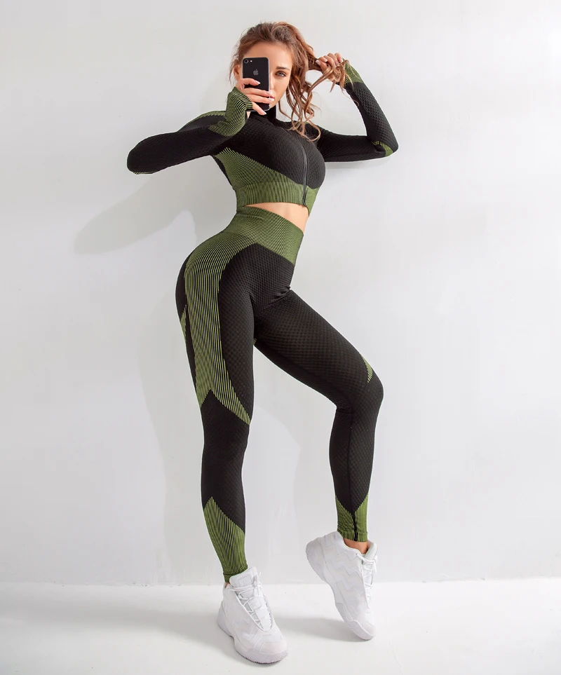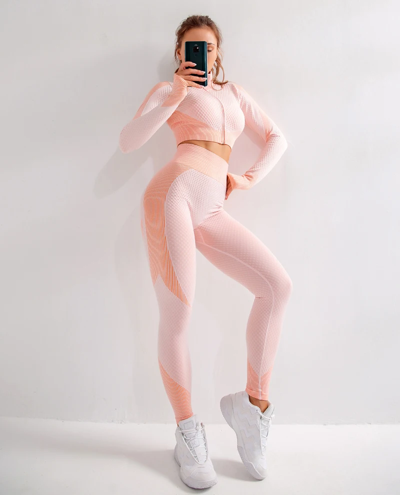 2/3 pçs feminino yoga terno sem costura malha calças de yoga leggings roupas zíper manga longa colheita topo de fitness wear conjunto de ginásio de roupas esportivas